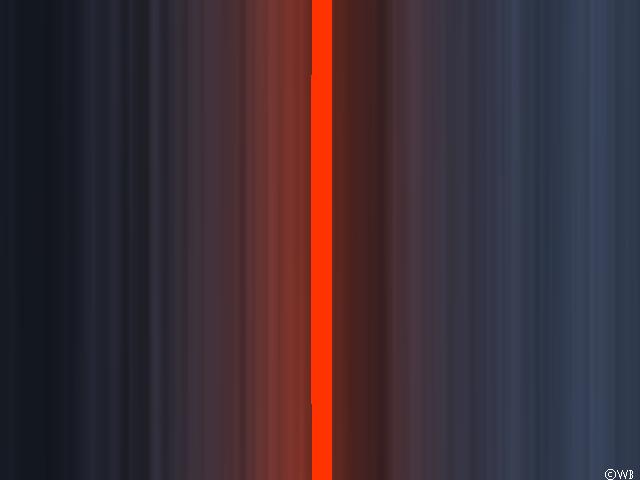 Now the Moon and its small lamp is positioned just behind the observer and gravity is switched on again. Using an horizontal view angle of a mere 1°, which is 1/10th of the previous view, one may again see the long gray stripe near the horizon, as before, but now the red lamp becomes visible also, the latter being stretched to be a long stripe also.